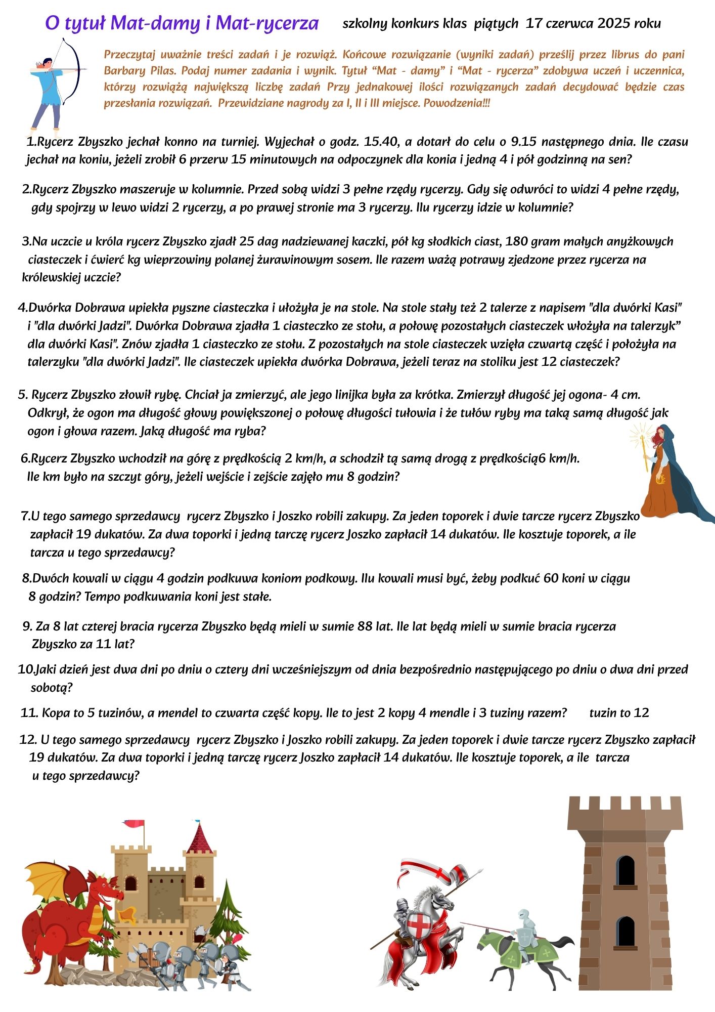 Zadania klasa 5 – O tytuł Mat-rycerza i Mat-damy – lepsza czytelność zadań